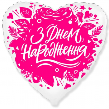Кулька фольгована надута гелієм серце З Днем народження квіти